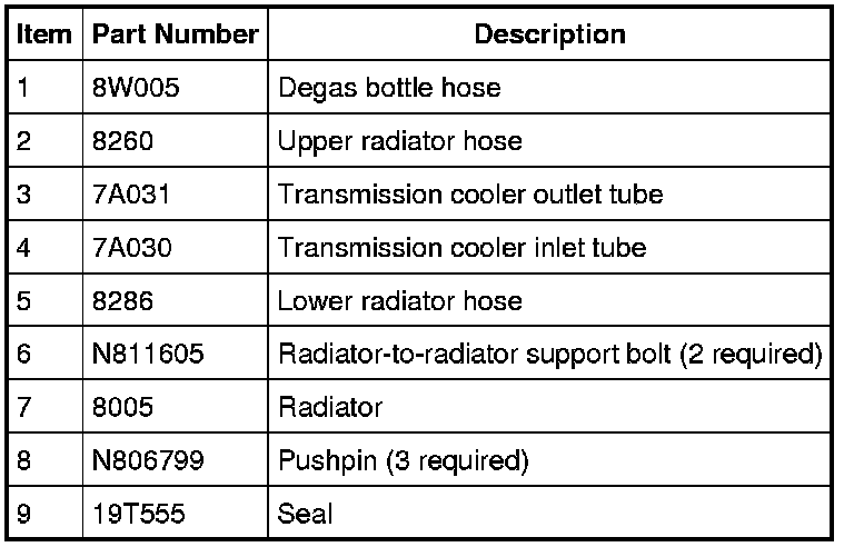 Radiator and Cooling Fan - Exploded View, 2.3L