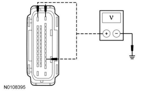 - Measure the voltage between the ABS module, harness side and ground as follows:
