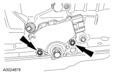2. NOTICE: Tightening one screw before tightening the other may cause the Transmission Range (TR) sensor to bind or become damaged.