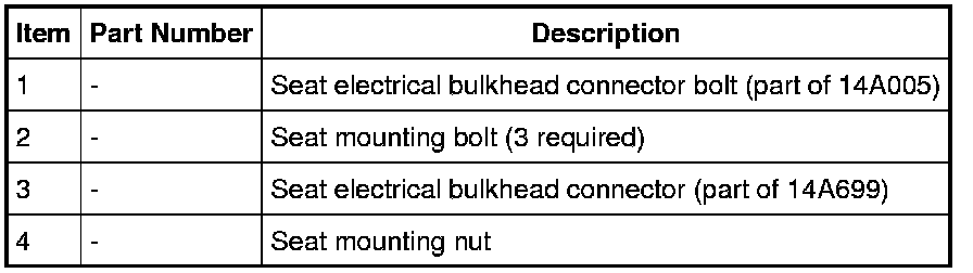 1. Position the seat in the vehicle, connect the electrical bulkhead connector and tighten the bolt.