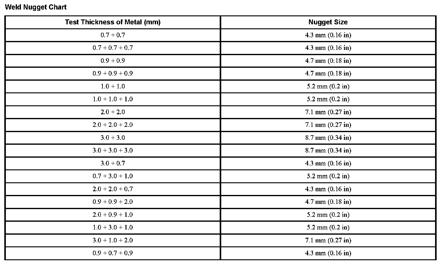 - Factory spot welds may be substituted with either STRW or MIG plug welds. Spot/plug welds should equal factory welds in both location and quantity. Do not place a new spot weld directly over an original weld location. Plug weld hole should equal 8 mm (0.31 in) diameter.