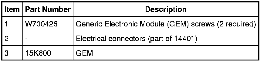 NOTE: A new Generic Electronic Module (GEM) is delivered in a "manufacturing mode" with a pre-set DTC. A successful configuration of the GEM, then a successful self-test including the clearing of all DTCs is required in order to clear the manufacturing mode DTC. The manufacturing mode DTC is: