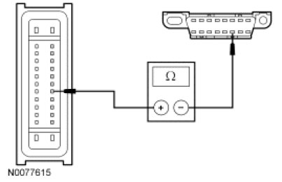 - Measure the resistance between the ABS module C135-21, circuit 5-EC7 (BU/RD), harness side and the DLC C251-14, circuit 5-EC7 (BU/RD)/5-EC8 (BU/WH), harness side.