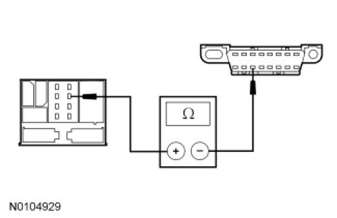 - Measure the resistance between the ACM C240b-10, circuit 5-EC1 (BU/RD)/5-EC13 (BU/WH), harness side and the DLC C251-11, circuit 5-EC1 (BU/RD)/5-EC13 (BU/WH)/5-EC14 (BU/BK), harness side.