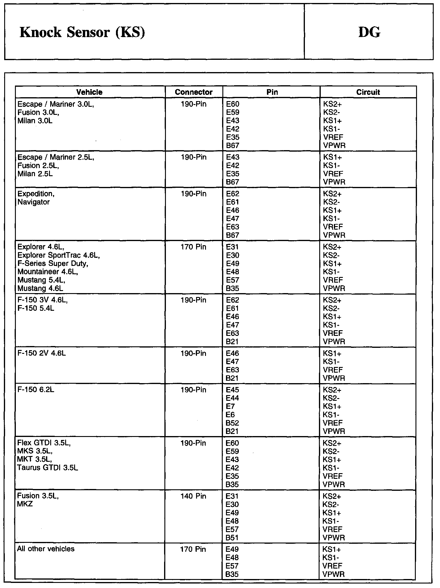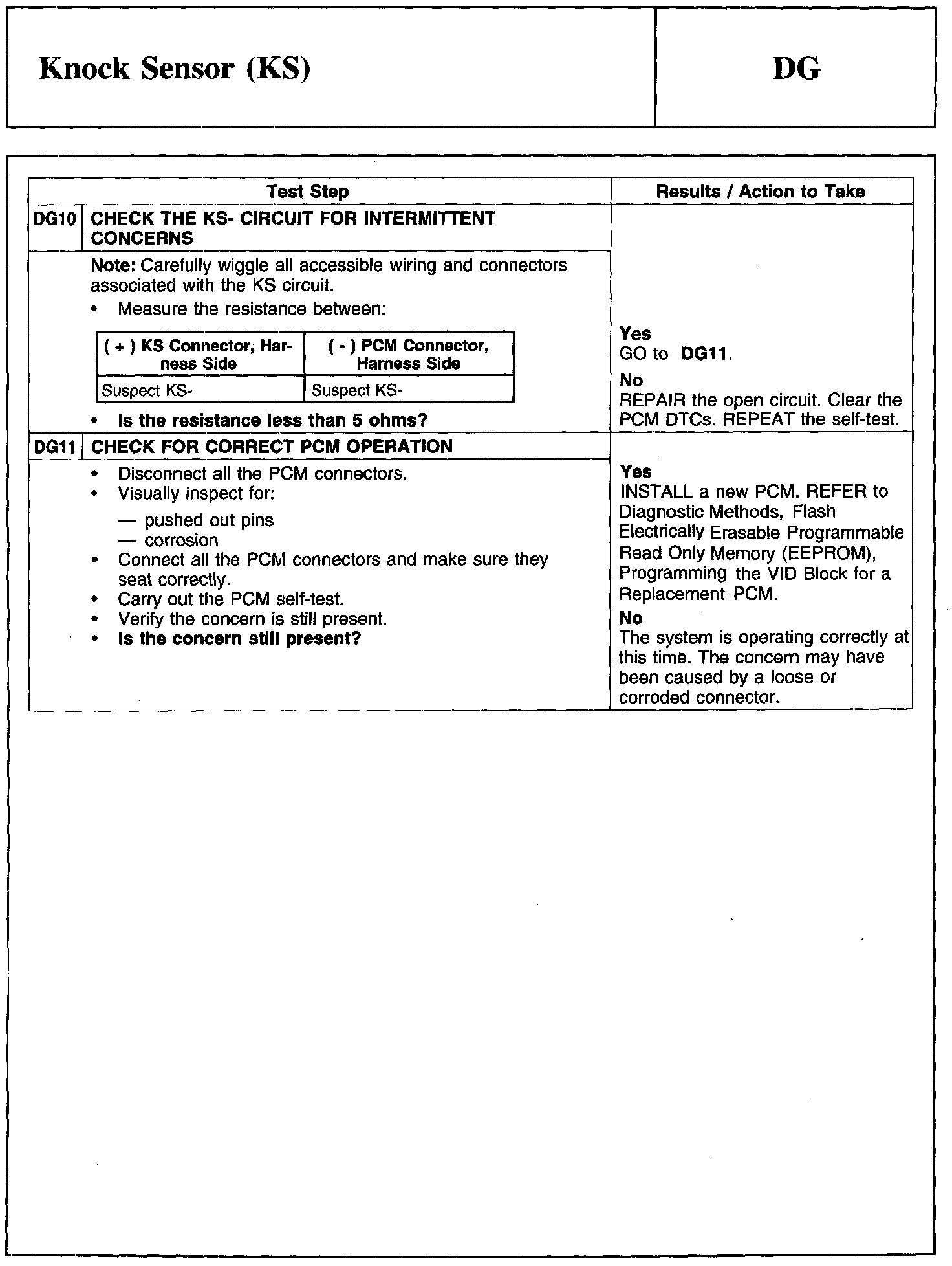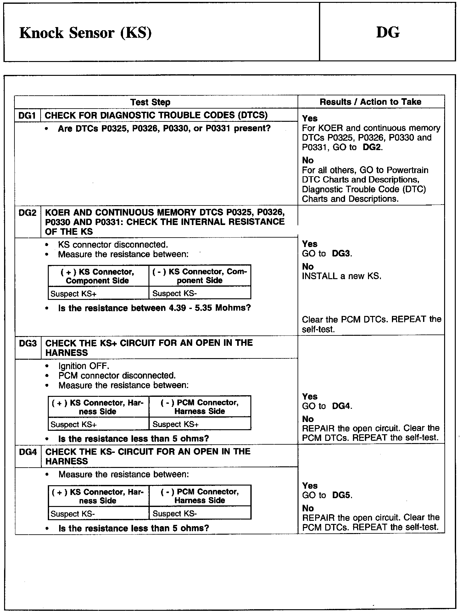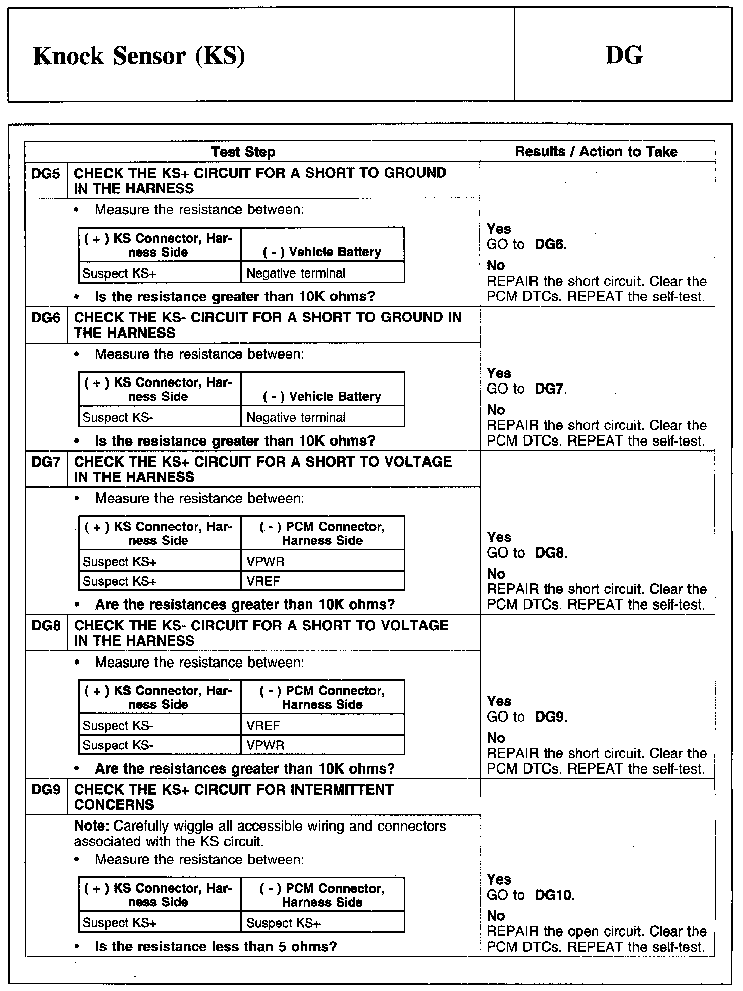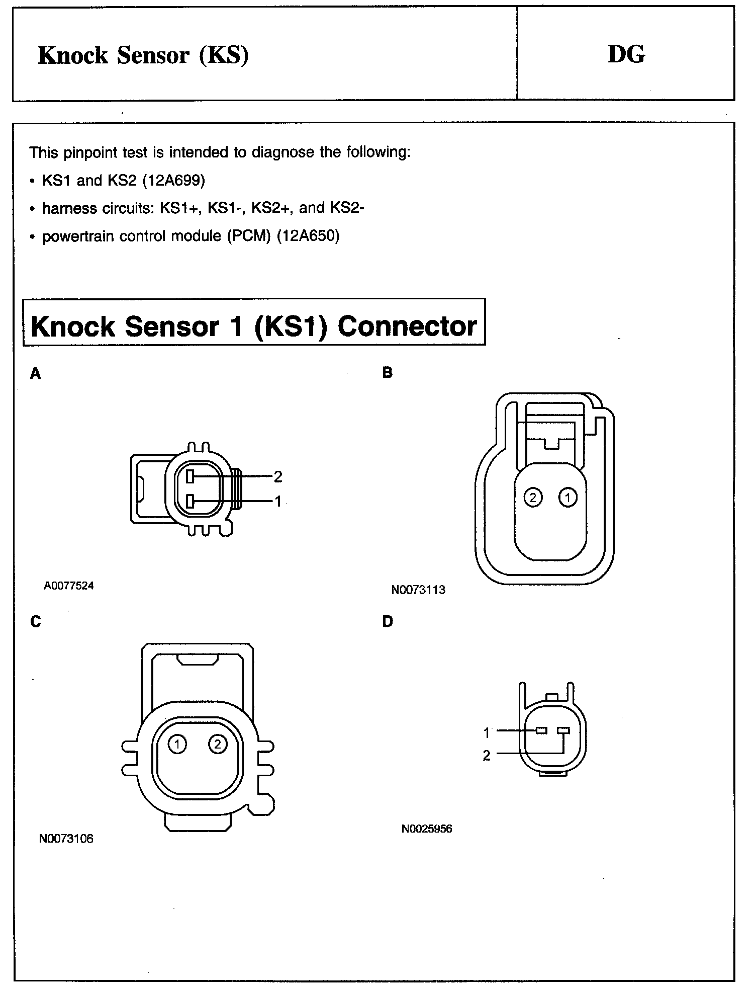 PINPOINT TEST DG: KNOCK SENSOR (KS)