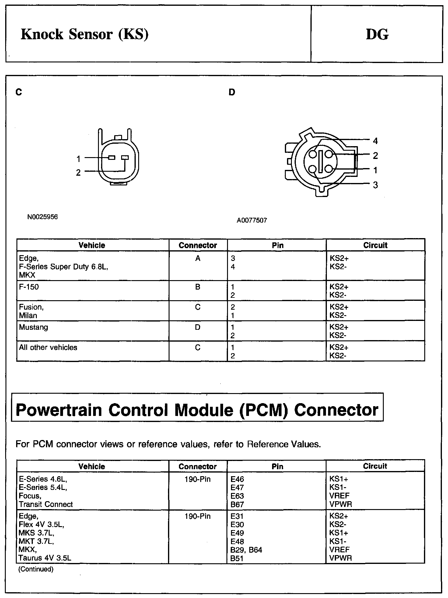 Knock Sensor 2 (KS2) Connector And Powertrain Control Module (PCM) Connector:
