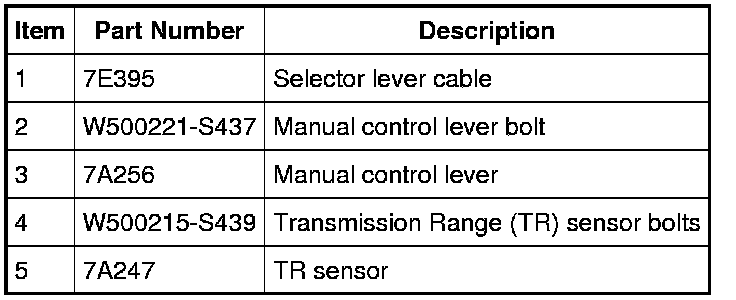 1. Disconnect the Transmission Range (TR) sensor electrical connector and the selector lever cable.