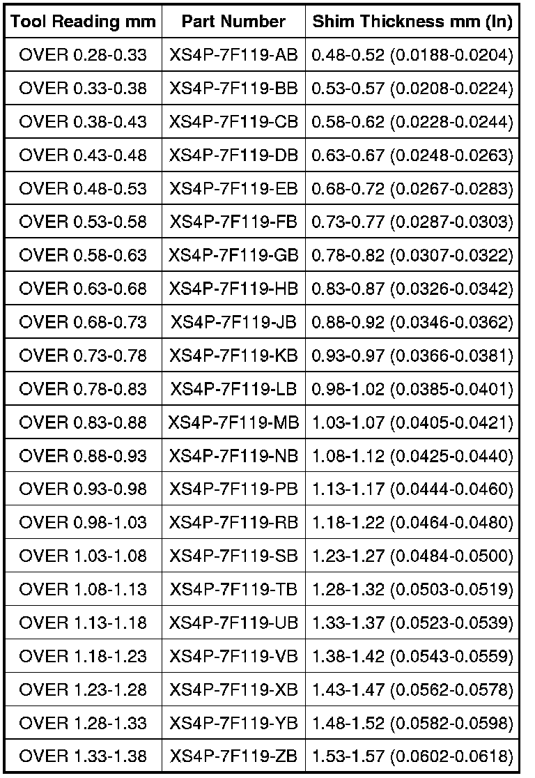 Differential Shaft Shim Selection Chart