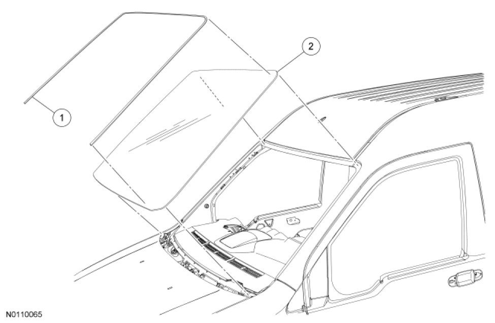 NOTICE: Before positioning the windshield glass, open vehicle windows to prevent the air pressure of closing doors from affecting the urethane adhesive bond.