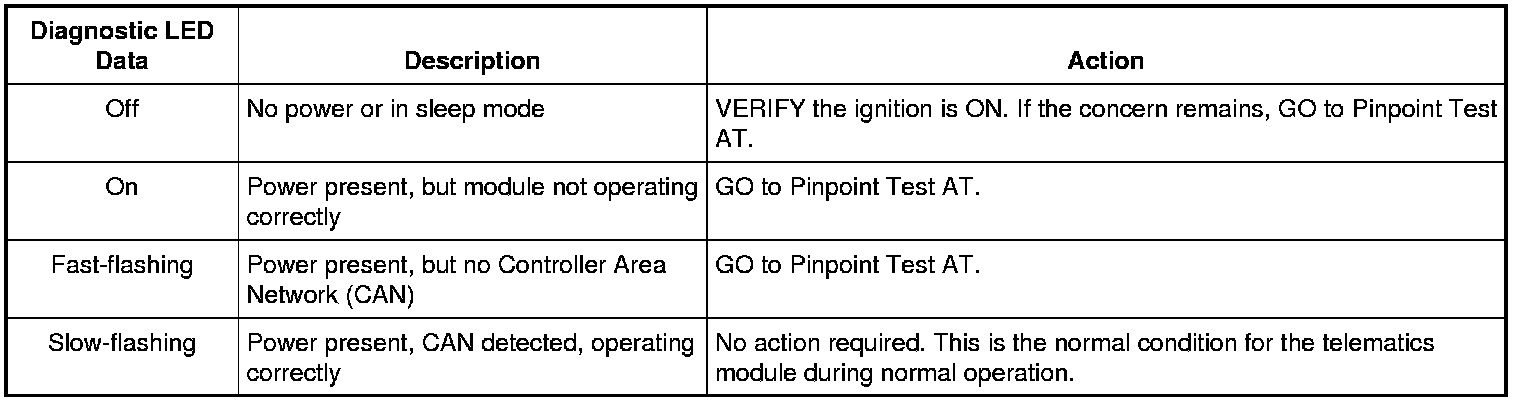 Telematics Module Green Diagnostic LED Chart