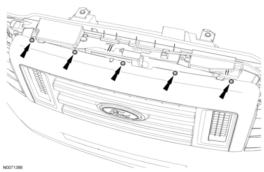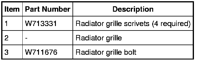 1. Remove the 4 radiator grille scrivets and the radiator grille bolt on top of the radiator grille.