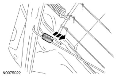 - Slide back the retainer spring and unhook the linkage.