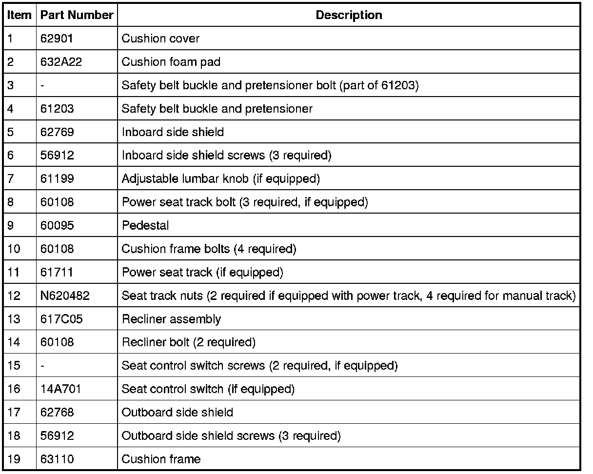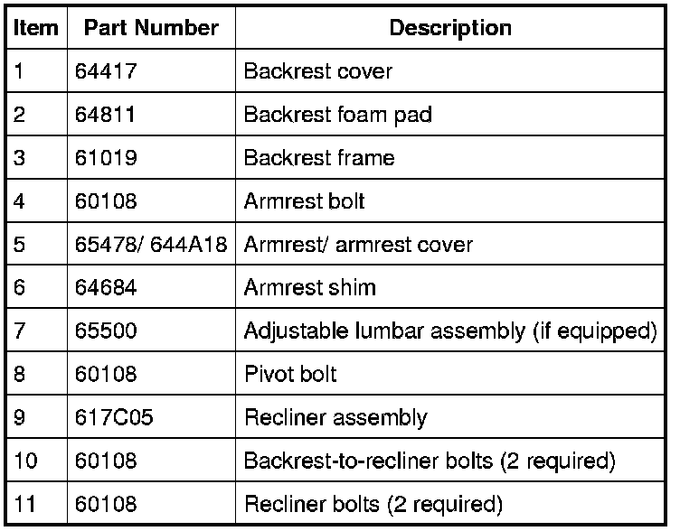 Seat - Exploded View, Front