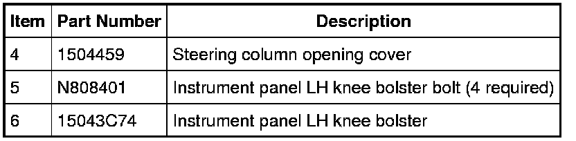 3. Remove the 4 bolts and the instrument panel LH knee bolster.