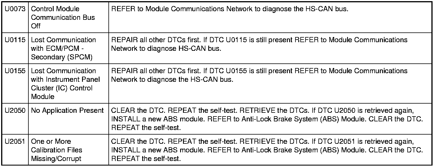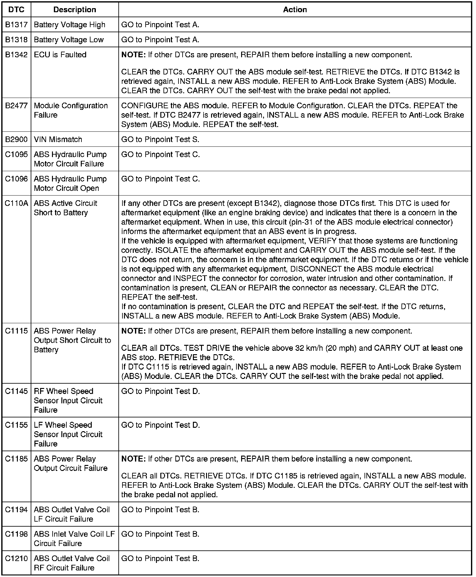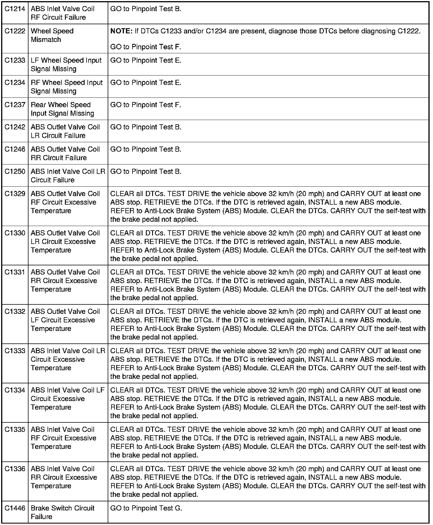 NOTE: This DTC chart only applies to vehicles equipped with ABS and Engine Only Traction Control (EOTC), it does not apply to vehicles equipped with Electronic Stability Control (ESC) or Roll Stability Control (RSC(R)). Refer to Inspection and Verification for information on identifying the vehicle brake system. Inspection and Verification