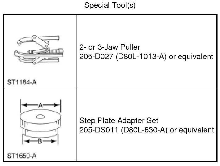 Using the 2- or 3-Jaw Puller and the appropriate size step plate from the Step Plate Adapter Set, remove and discard the front wheel speed sensor ring.