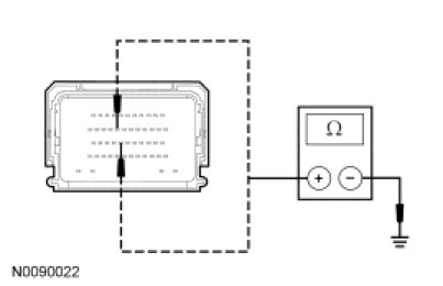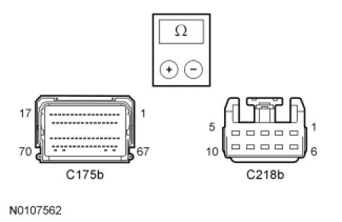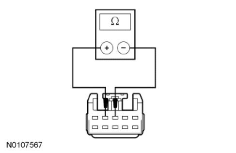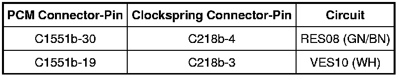 - Measure the resistance between the C218b-3, circuit VES10 (WH), harness side and the clockspring C218b-4, circuit RES08 (GN/BN), harness side and ground.