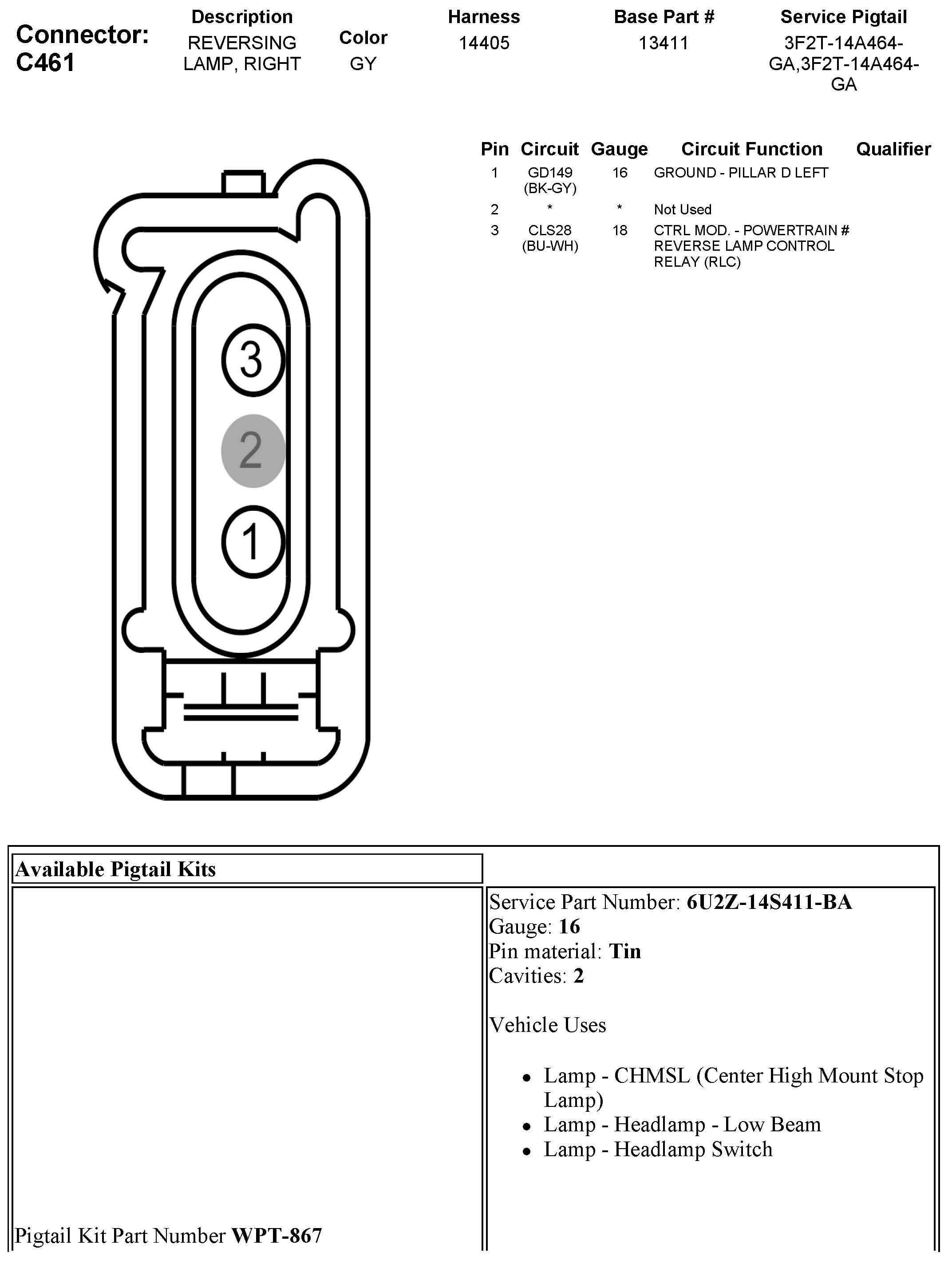 C461 Reversing Lamp, Right