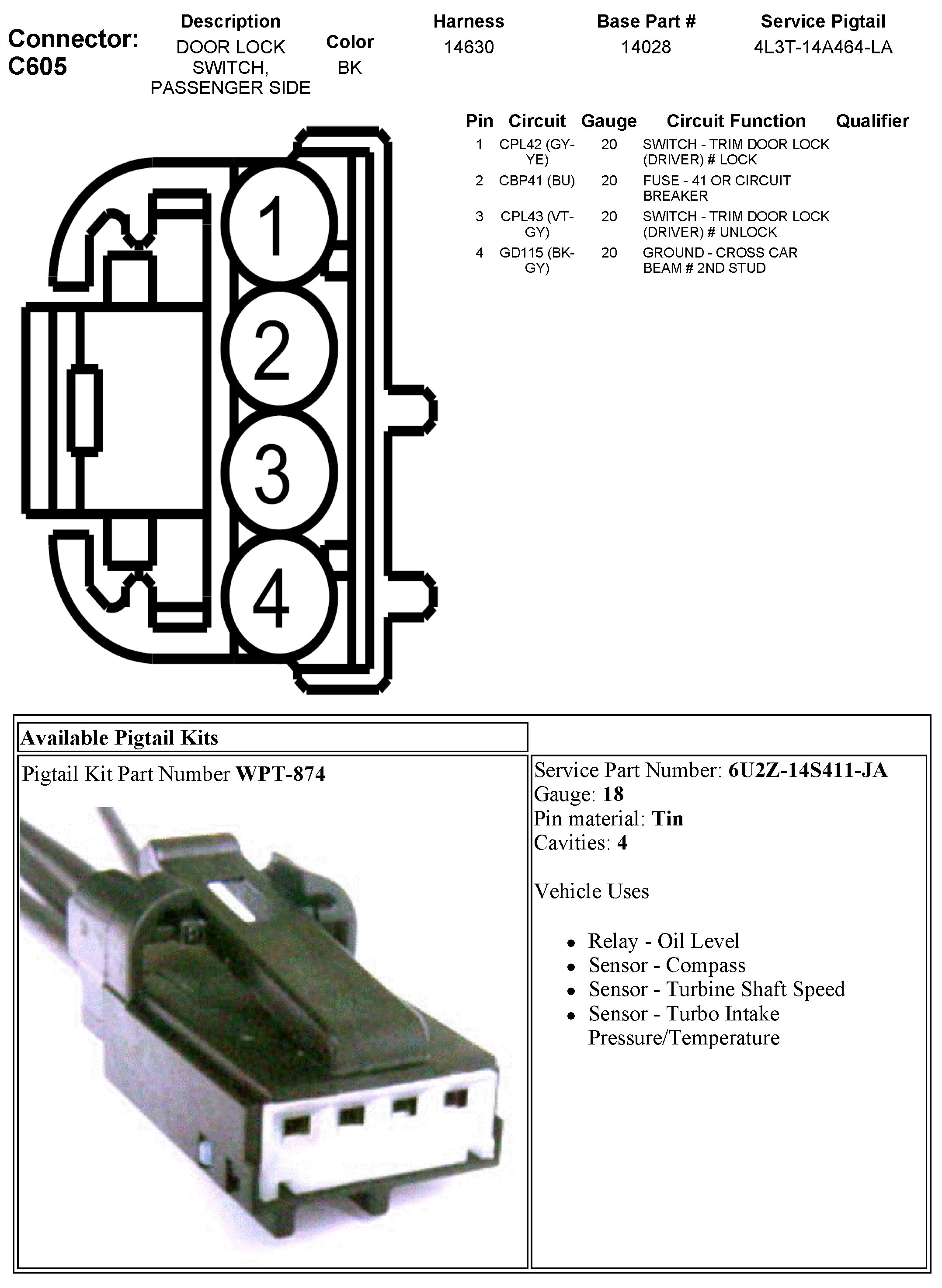 C605 Door Lock Switch, Passenger Side