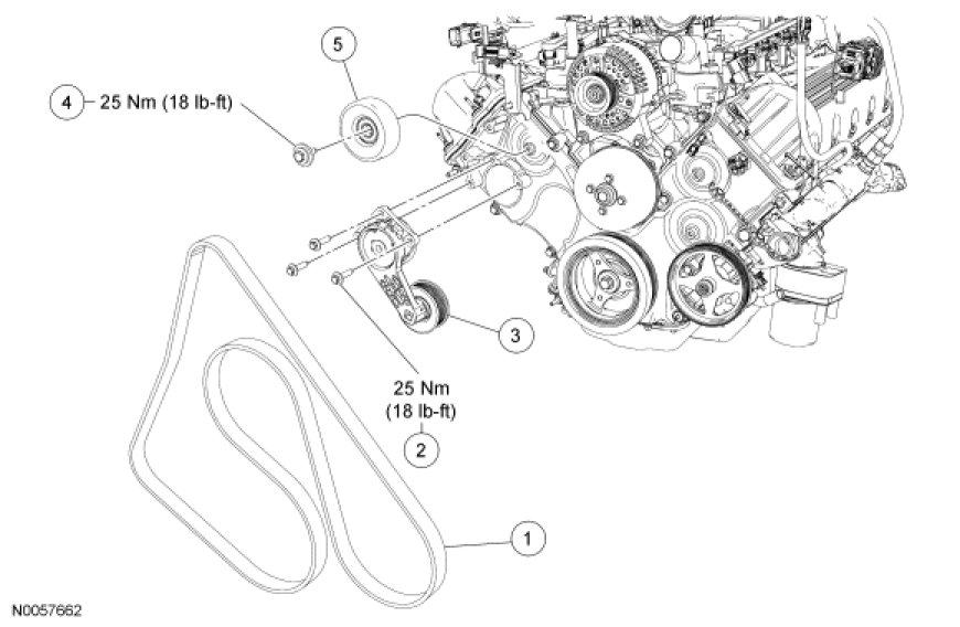 NOTE: It is necessary to remove the Air Cleaner (ACL) assembly to gain access to the accessory drive belt and accessory drive belt tensioner. For additional information, refer to Intake Air Distribution and Filtering Intake Air System Components - Exploded View.