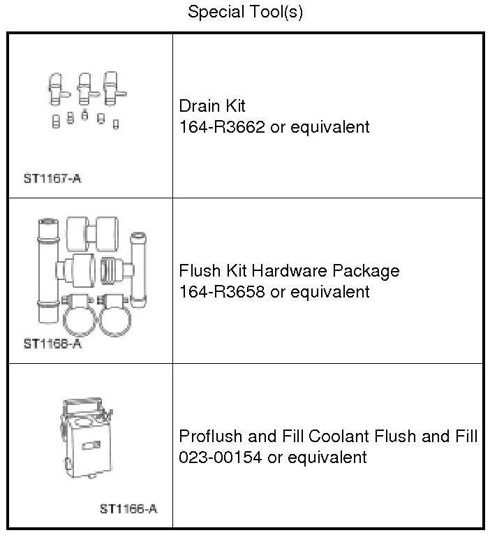 Use cooling system Flush-All, Flush Kit Hardware Package and Drain Kit to flush the engine and radiator.