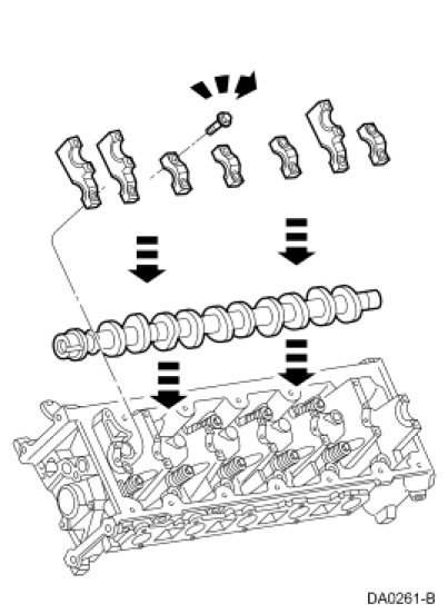 - Position the 7 camshaft bearing caps.