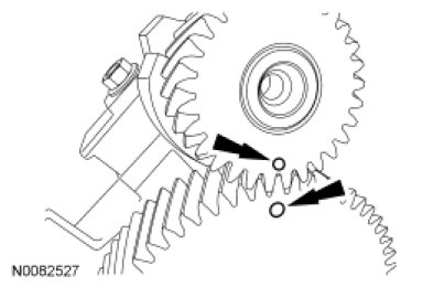 54. Align the timing mark on the balance shaft with the camshaft timing mark as shown.