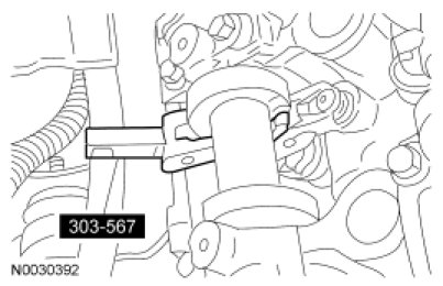 76. NOTE: Use a Strap Wrench (303-D055) or equivalent, to hold the pulley while tightening the bolt.