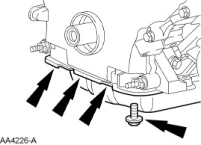 31. Remove the 4 front oil pan bolts.