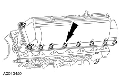37. Remove the 10 spark plugs. For additional information, refer to Engine Ignition - 6.8L Spark Plugs.