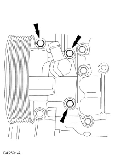 30. Remove the 3 bolts and the power steering pump.