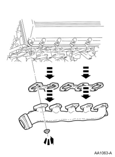 - Remove and discard the RH exhaust manifold gaskets.