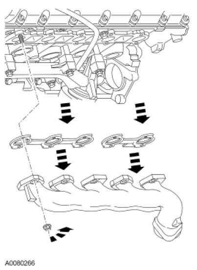 - Remove and discard the LH exhaust manifold gaskets.