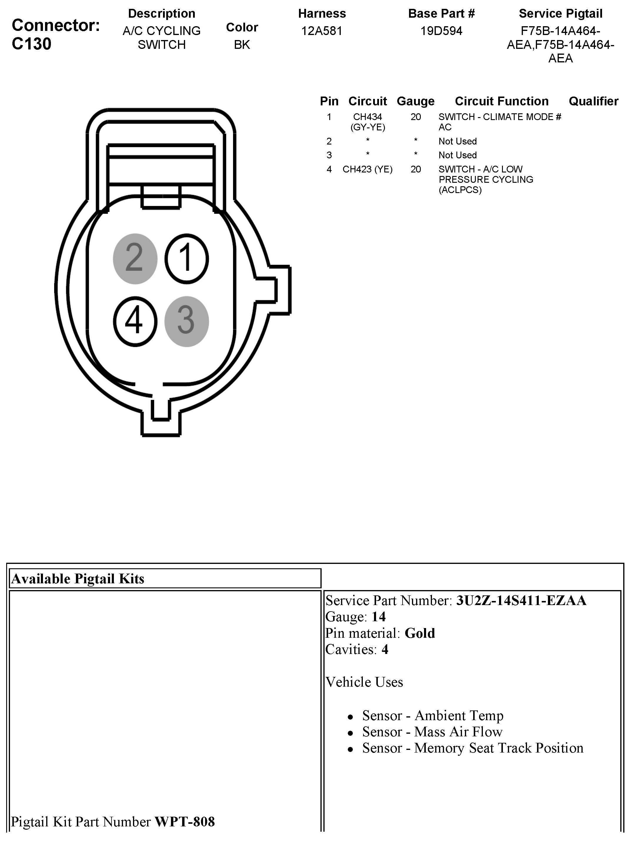 Refrigerant Pressure Sensor / Switch: Diagrams