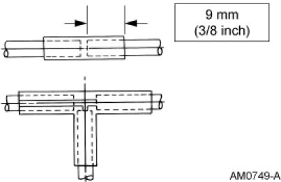 5. Insert the ends of the mini-tube vacuum hose approximately 9 mm (3/8 in) into the ends of the standard 1/8-in repair vacuum hose section.