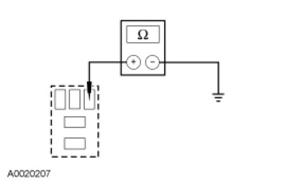 - Measure the resistance between auxiliary high speed blower motor relay pin 4, circuit CHA04 (GN/WH) and ground.