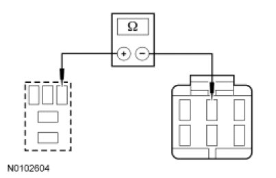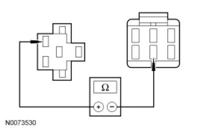 - Measure the resistance between auxiliary high speed blower motor relay socket pin 5, circuit GD149 (BK/GY) and ground.