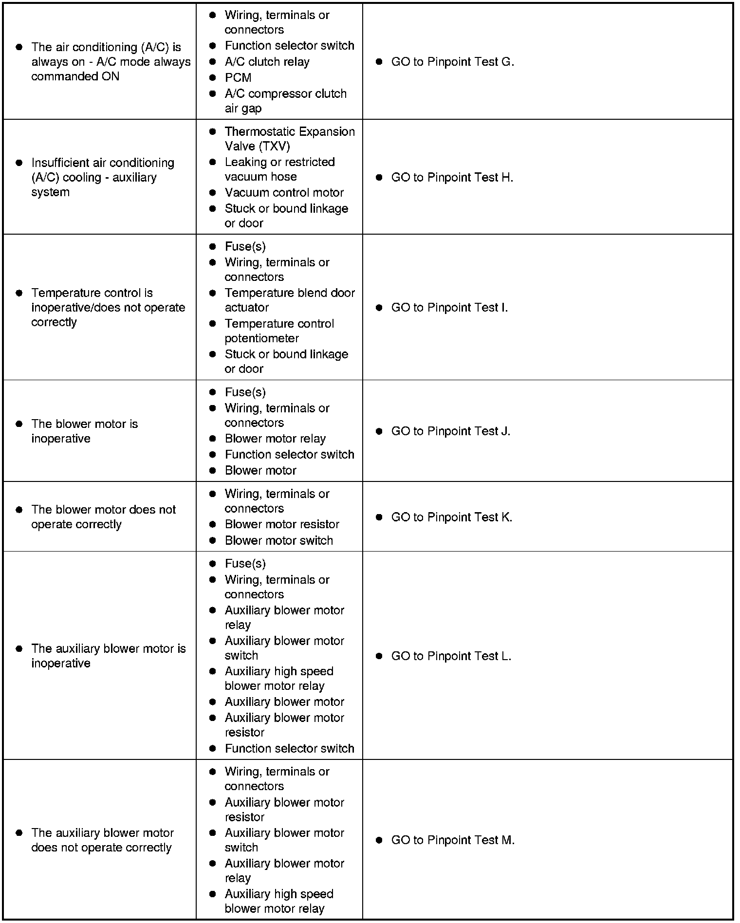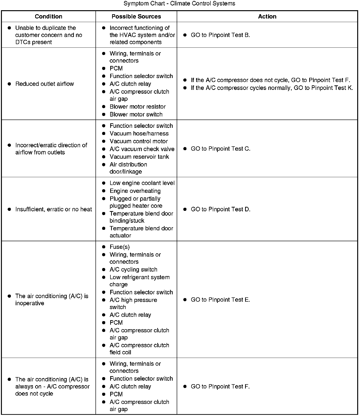 Symptom Chart - Climate Control Systems
