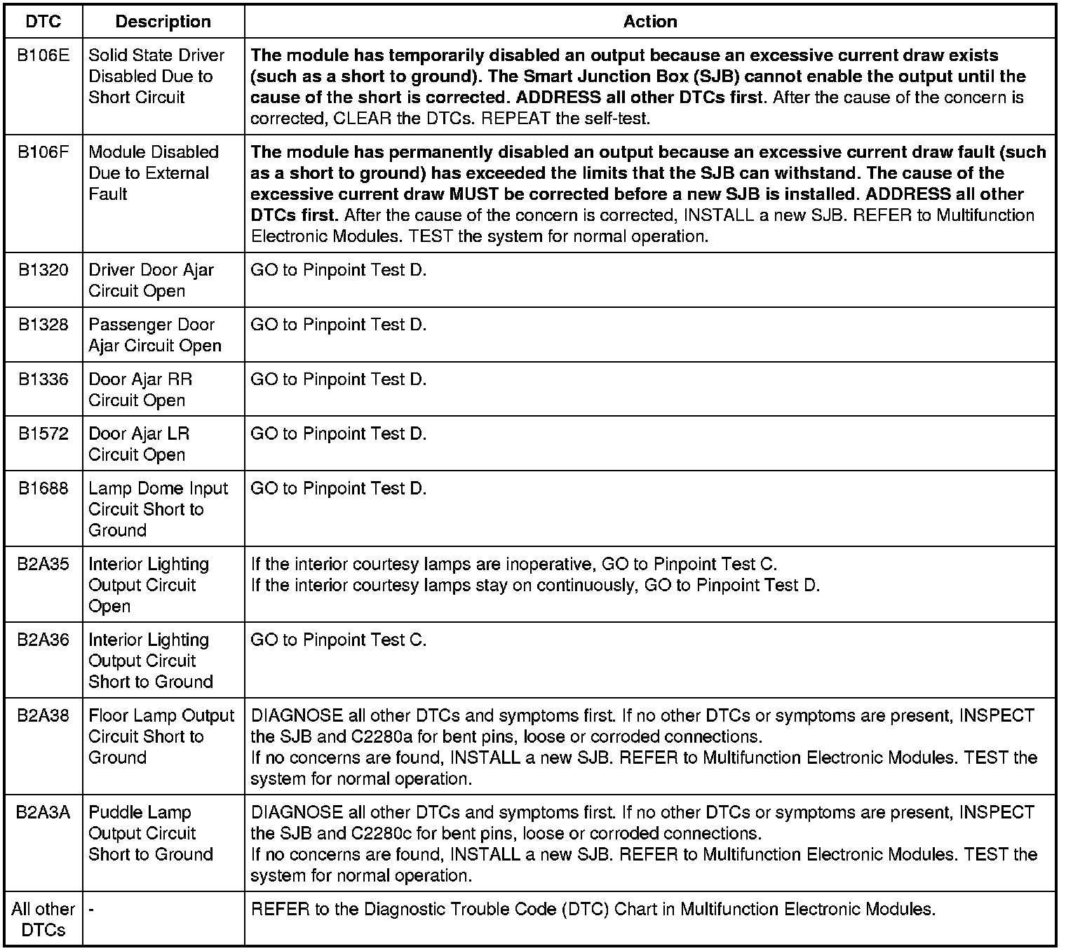 Smart Junction Box (SJB) DTC Chart