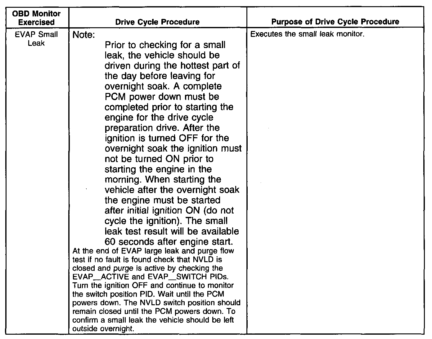 3. The evaporative monitor can operate only during the first 30 minutes of engine operation. When executing the procedure for this monitor, stay in part throttle mode and drive in a smooth fashion to minimize fuel slosh.