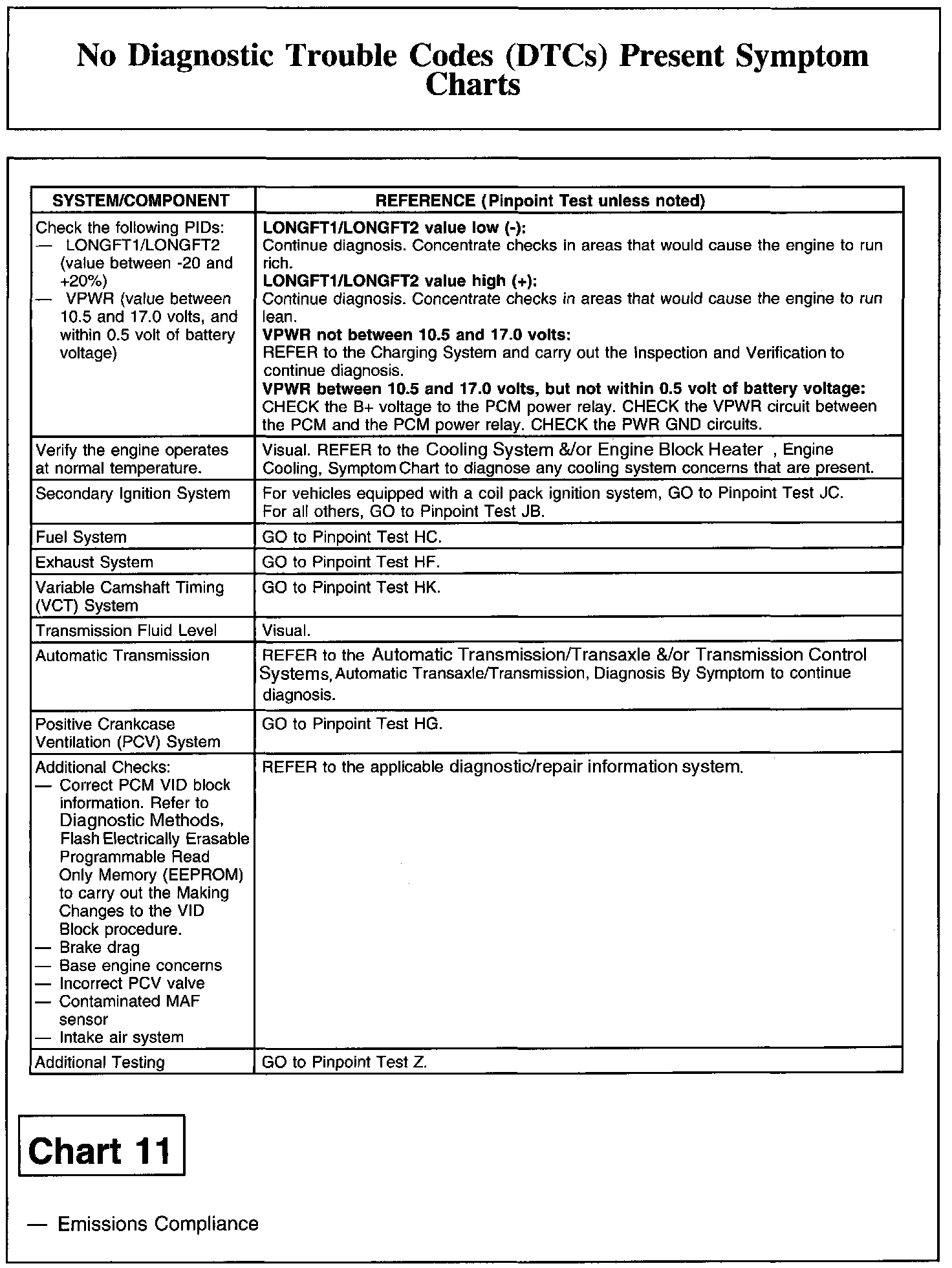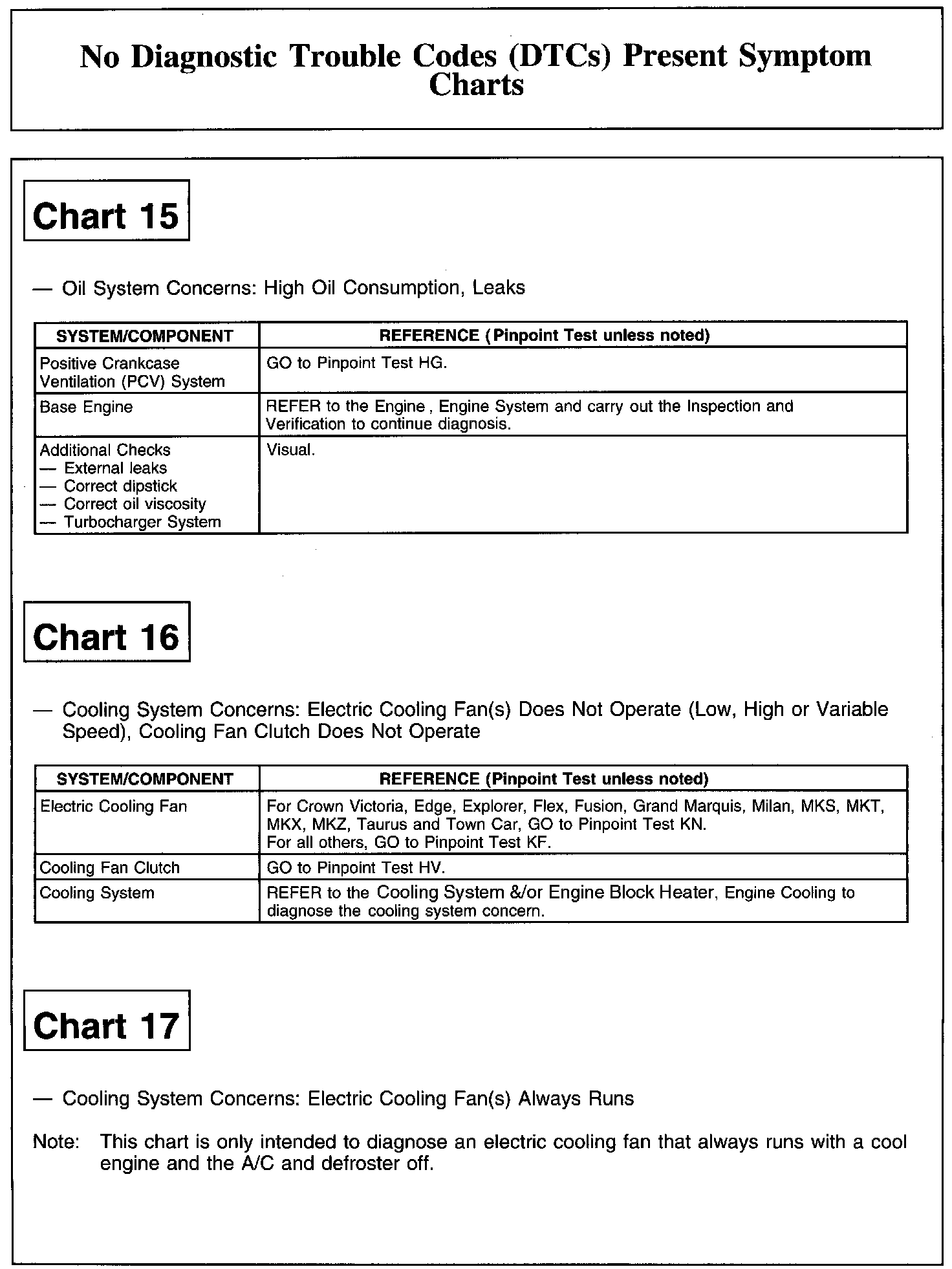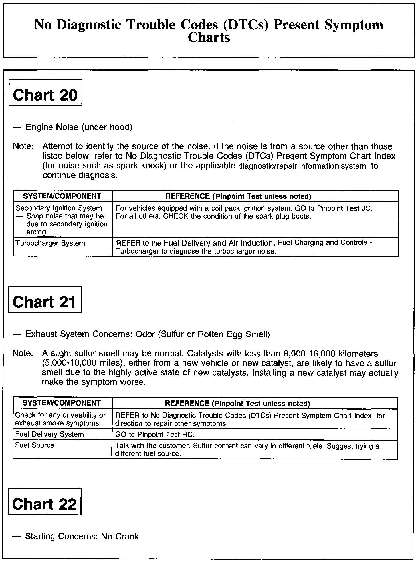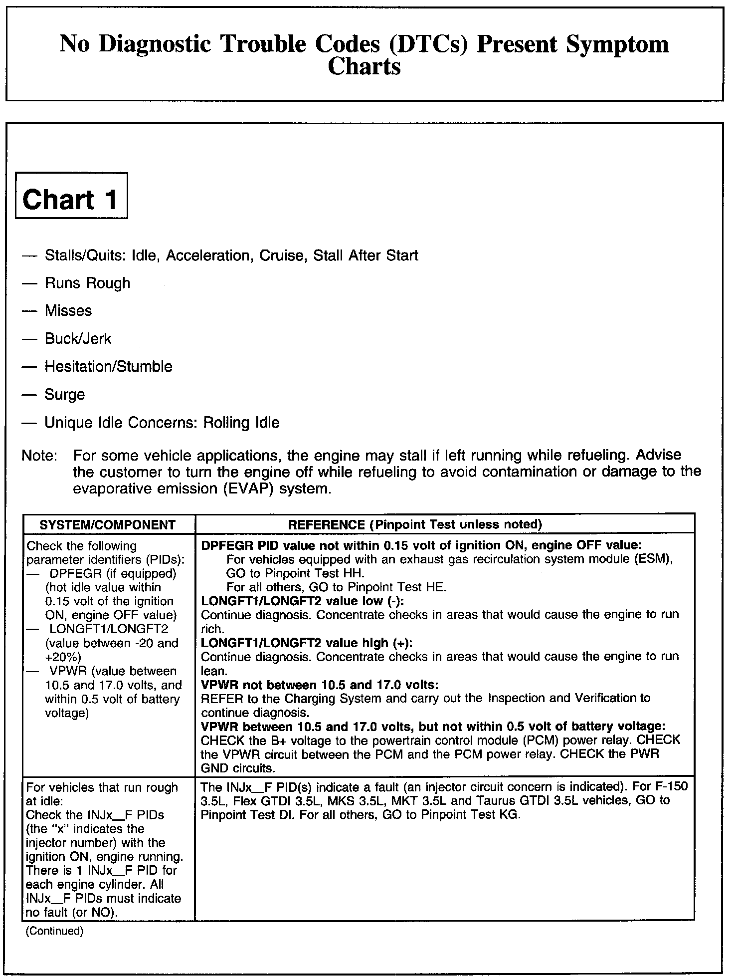 NO DIAGNOSTIC TROUBLE CODES (DTCS) PRESENT SYMPTOM CHARTSChart 1: