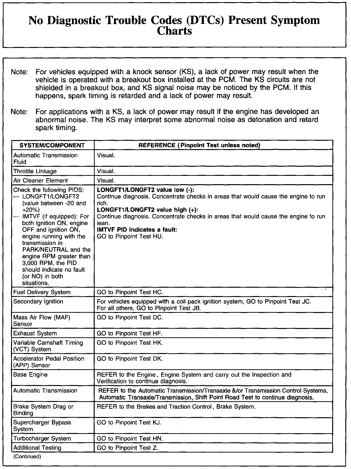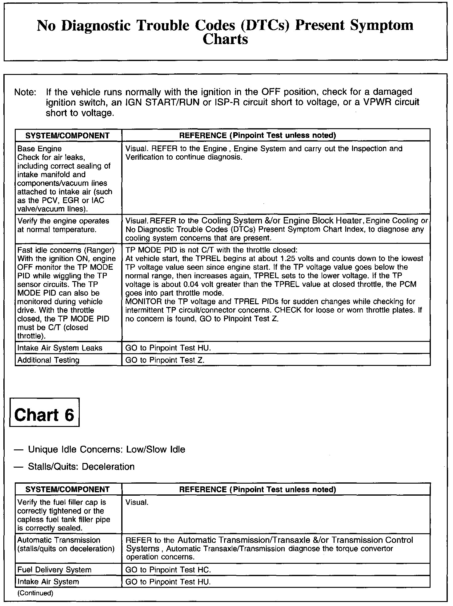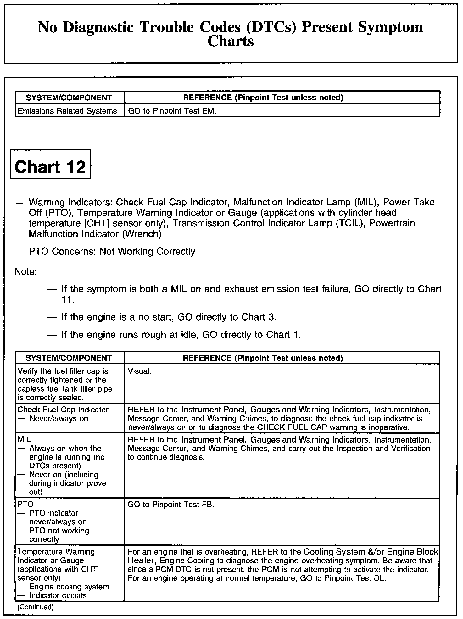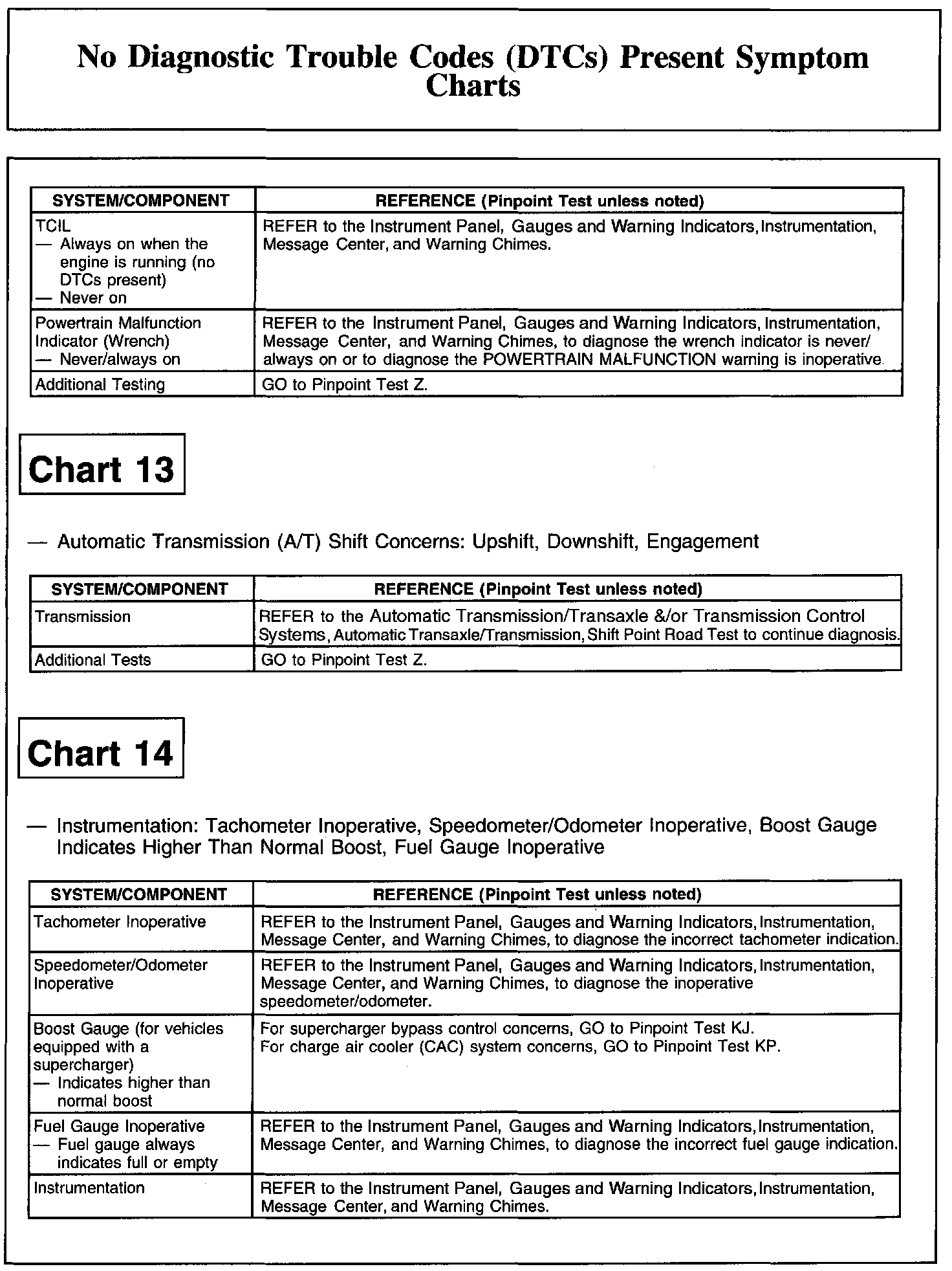 NO DIAGNOSTIC TROUBLE CODES (DTCS) PRESENT SYMPTOM CHARTSChart 1: