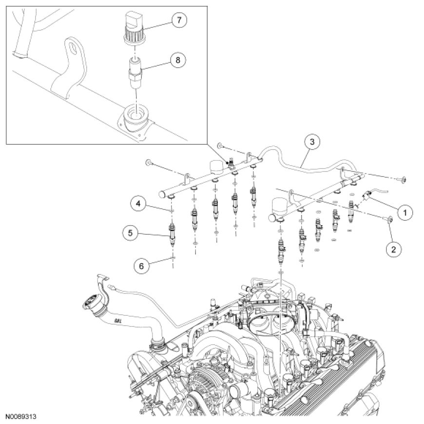 Fuel Rail and Fuel Injector - Exploded View