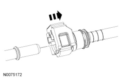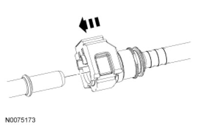 NOTICE: When reusing liquid or vapor tube connectors, make sure to use compressed air to remove any foreign material from the connector retaining clip area before separating from the tube or damage to the tube or connector retaining clip may occur. Apply clean engine oil to the end of the tube before inserting the tube into the connector.