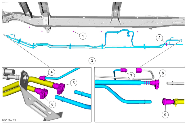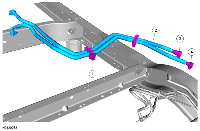 1. W520102 Center fuel supply tube, fuel vapor tube and brake fluid tube assembly position retainer nut - 9 Nm (80 lb-in) (number required varies with vehicle wheelbase)