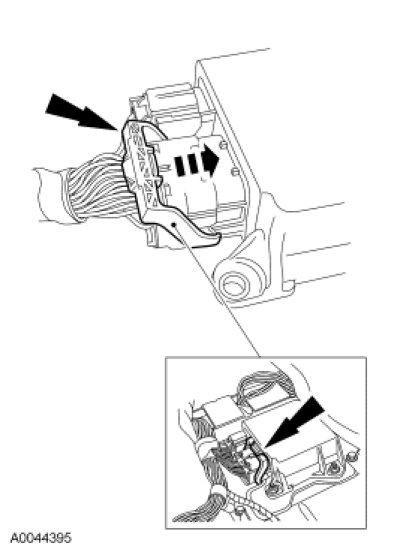- Using the connector position assurance lever, pivot it toward the RCM, drawing the connector into the RCM.