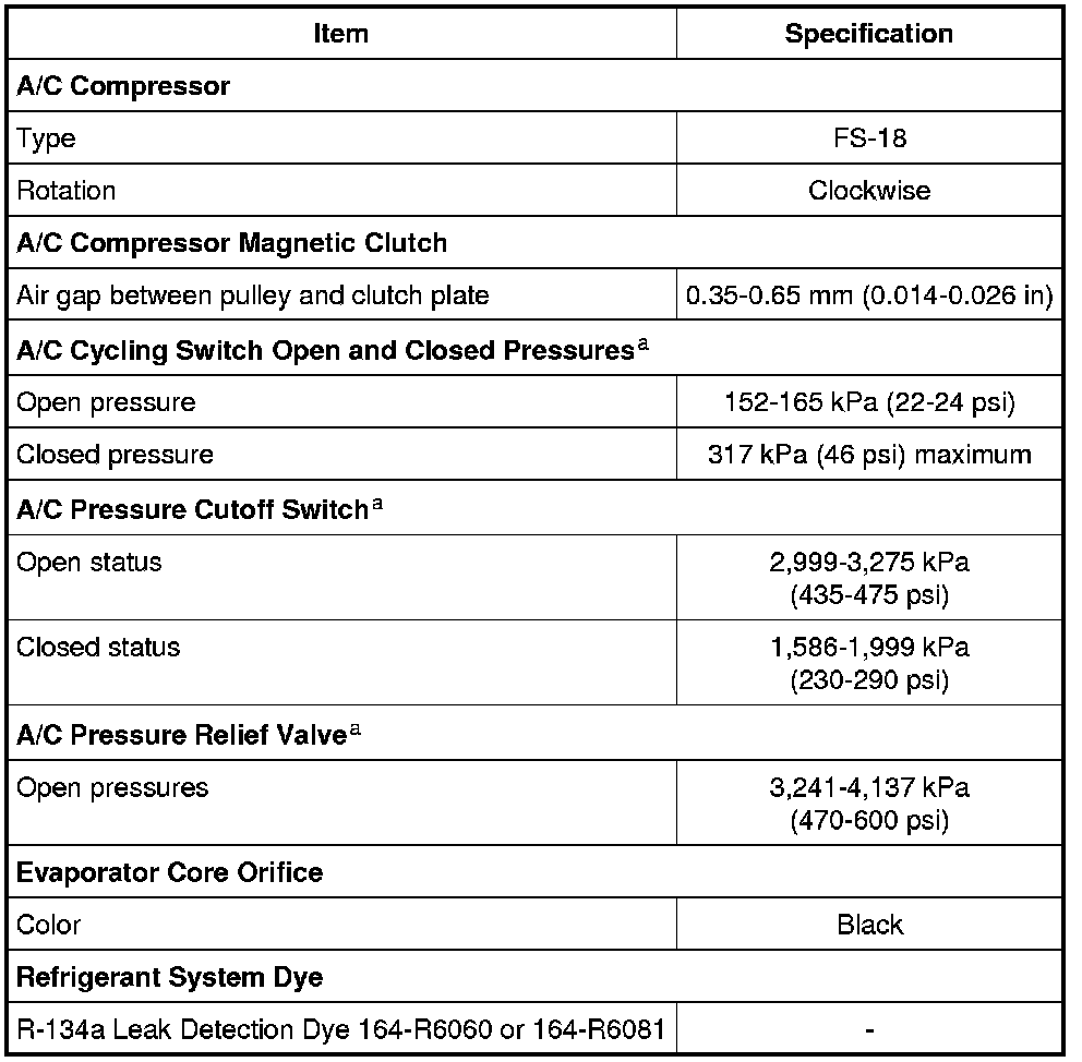 a Manifold gauge set pressures may vary slightly depending on the distance between the service gauge port valve and the A/C pressure relief valve, the A/C cycling switch or the dual function pressure switch location.