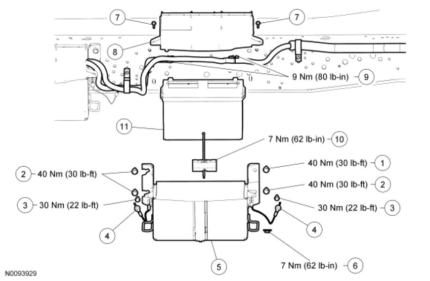 Battery and Battery Tray - Exploded View, Frame Mounted