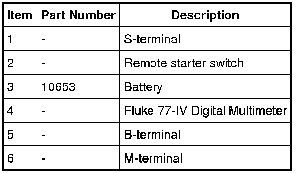8. Remove the cables from solenoid B-, S- and M-terminals. Clean the cables and connections and reinstall the cables to the correct terminals. Repeat Steps 3 through 6. If the voltage drop reading is still greater than 0.5 volt when checked at the M-terminal and less than 0.5 volt when checked at the B-terminal, the concern is in the solenoid contacts. Install a new starter motor.