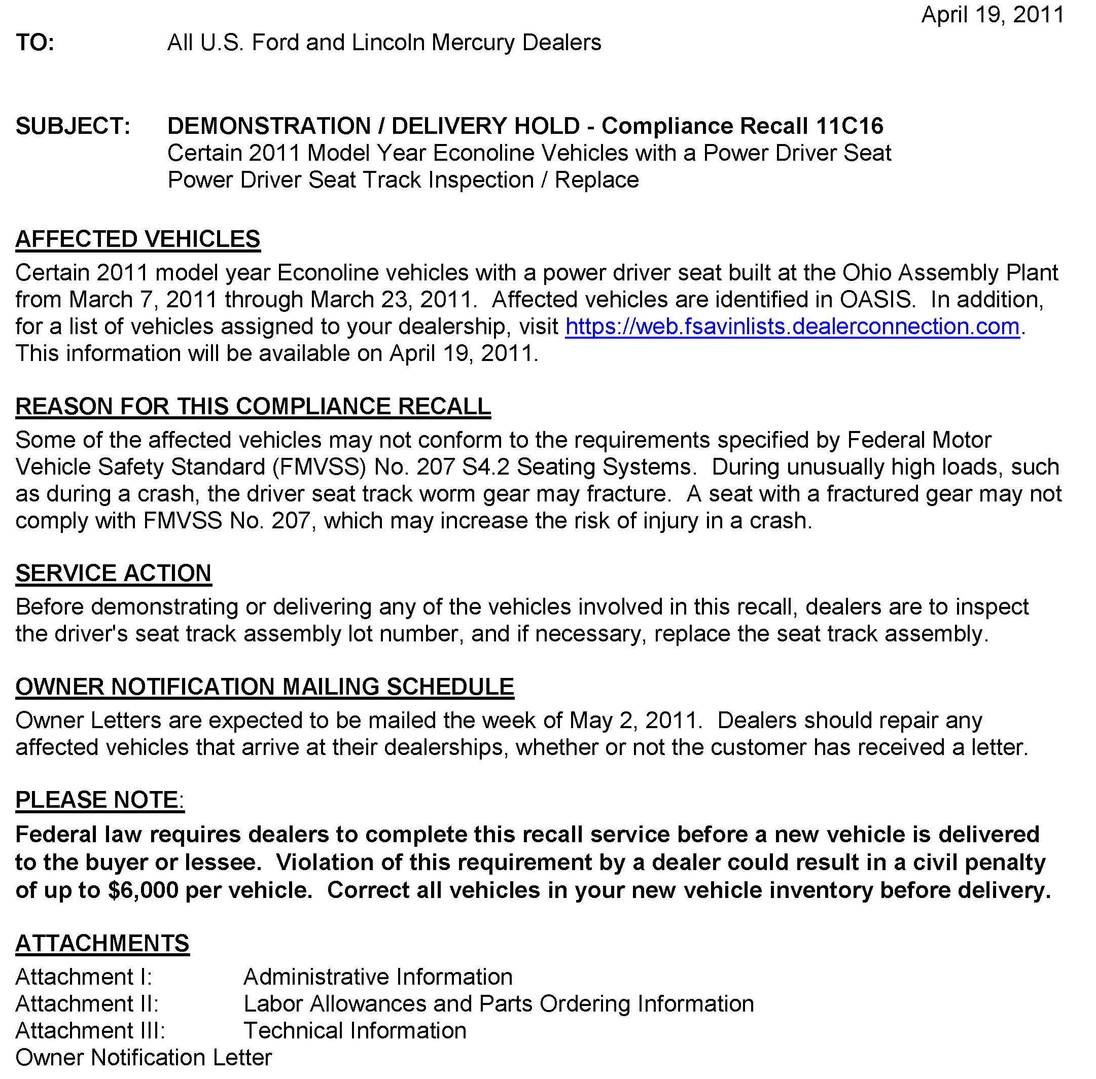 Recall - Power Seat Track Inspection/Replacement
